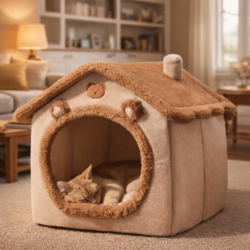 A Casinha De Pelúcia  CozyCat™ foi criada para ser o cantinho seguro que seu felino instintivamente procura.